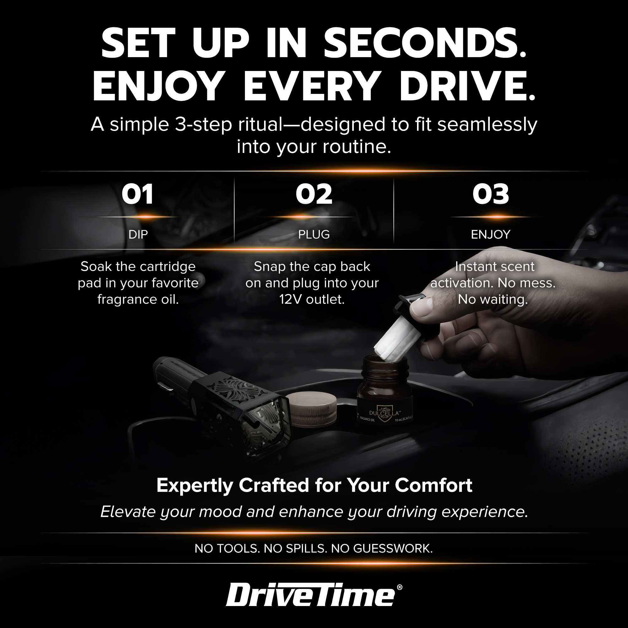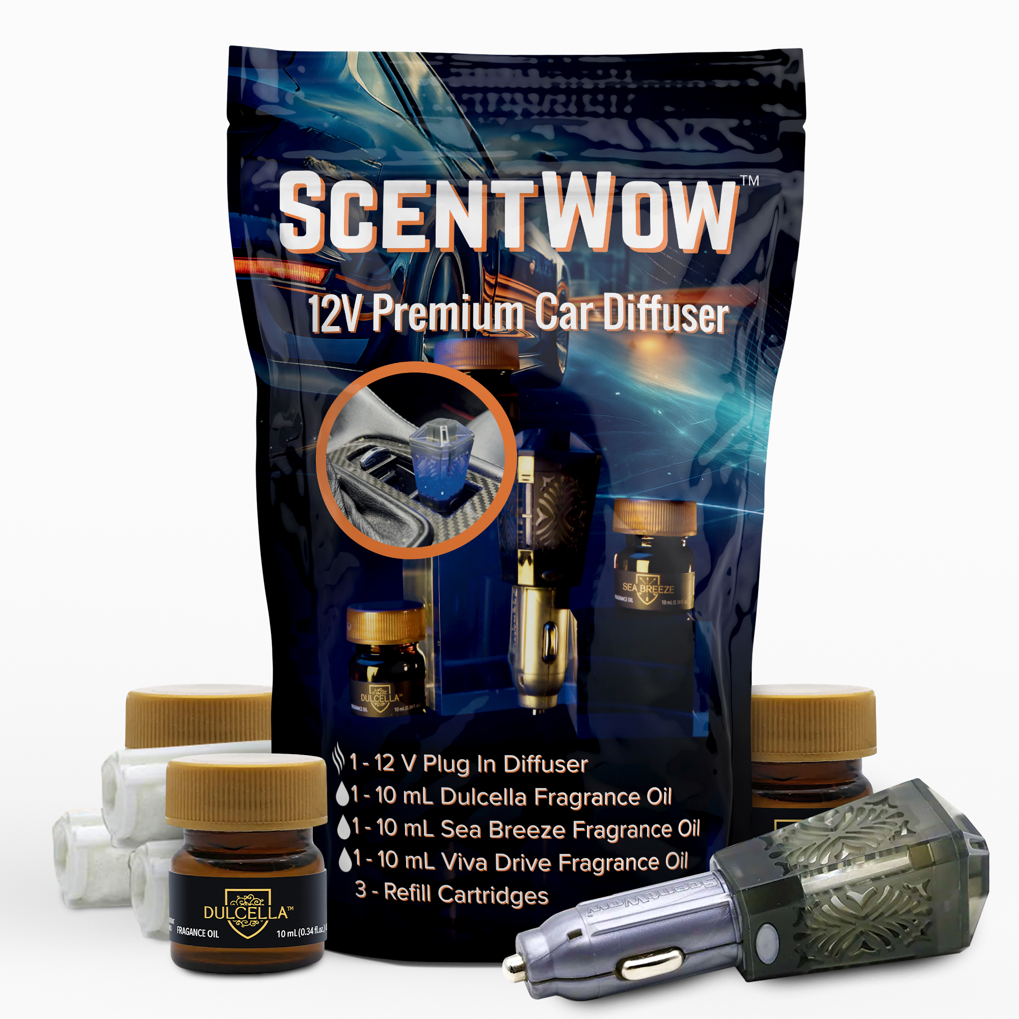 Upgrade your drive with the DriveTime ScentWow 12V Car Air Freshener Diffuser — a powerful, plug-in fragrance system built to deliver strong, long-lasting scent throughout your vehicle.